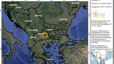 По данни на Националния Сеизмологичен център към Националнияинститут по геофизика, геодезия и география - БАН , в 16:48 ч., е регистрирано земетресение с магнитуд 3.5 в района на град Симитли, област Благоевград. Епицентърът е на 15 км от Благоевград, на 50 км от град Сандански и на 90 км от град София. До момента има данни..