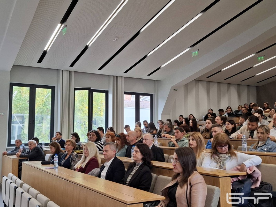 Пред препълнена зала в Стопанския факултет на Югозападния университет „Неофит Рилски“ ректорът на Икономически университет – Варна проф. д-р Евгени Станимиров изнесе публична лекция на тема „Лидерство – пробуждането“. Събитието предизвика голям интерес и събра представители на академичните среди, студенти, предприемачи, представители на бизнеса.