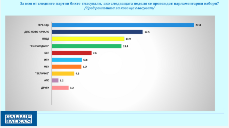 "Галъп": Подкрепата за ГЕРБ расте, "ДПС–Ново начало" е втора сила. Кой е под №3?