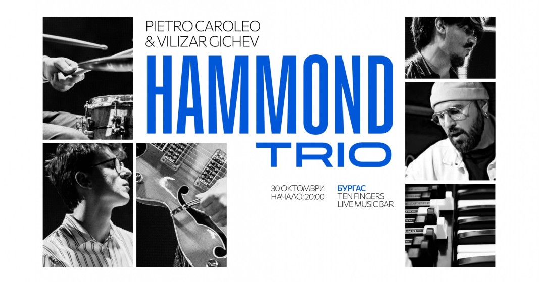 Pietro Caroleo and Vilizar Gichev Hammond Organ Trio - проект без аналог в България, избра Бургас за спирка от музикалната си обиколка. На 30 октомври от 20:00 часа в пиано бар “Ten Fingers” жители и гости на града ще се насладят на изключителни музиканти и хамънд орган  - изключително рядък инструмент.
