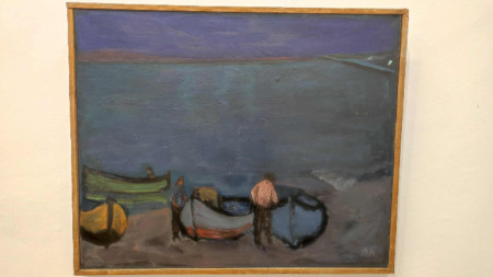 В изложбата има три такива цветни сюжета, няколко портрета, пейзажи и фигурални композиции. Сред платната е и картината спечелила първа награда за живопис на националното биенале „Приятели на морето“ през 2004 г.