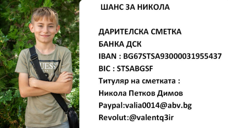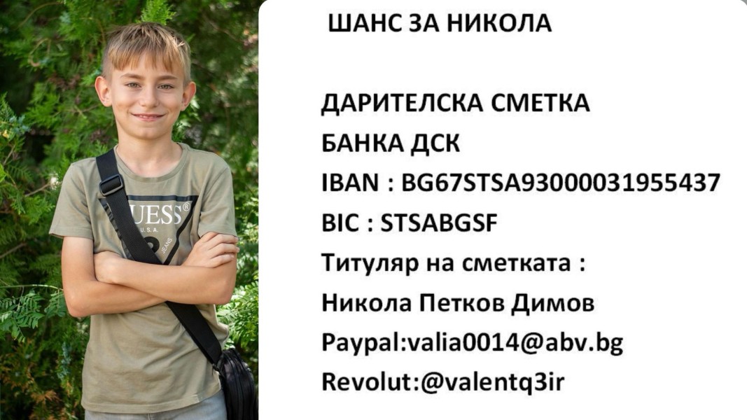 Момчето е родено с дефицит на бедрената кост тип 1А. През 2019 г. в САЩ е преминало първата си операция за удължаване на костта, последвана от 12 седмици физиотерапия. През 2020 г. крачетата са били изравнени, а фиксаторът – премахнат. През май тази година след преглед в Полша е установено, че разликата между краката отново нараства. Необходимо е ново удължаване с 4,5 см и поставяне на вътрешен фиксатор PRECICE NAIL. Ще последват осем седмици физиотерапия, а през 2026 г. предстои премахване на устройството.