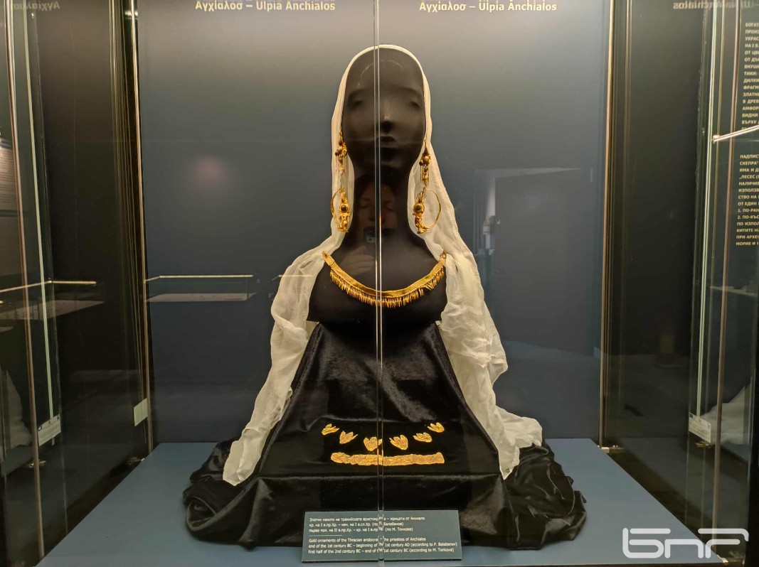 Изложба „Спомени от античността. Лесескепра - Жрицата от Анхиало“ откриха днес в зала „Трезор“ на Археологическия музей в Бургас. С нея се отбелязват 50 години от спасителното археологическо проучване на богат гроб на аристократка в некропола на Анхиало, където са открити впечатляващи златни накити.