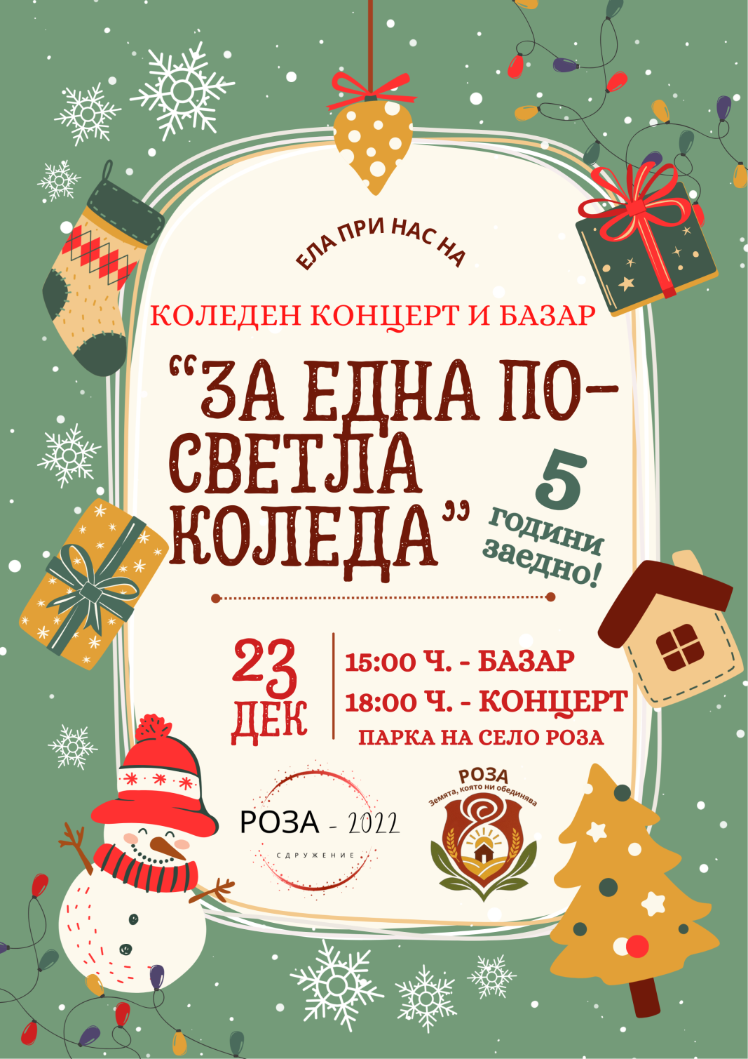 Роза ще се превърне в най-коледното място в област Ямбол за пети пореден път на 23 декември, когато ще се осъществи юбилейното издание на най-чаканото събитие в селото – Коледен концерт и базар „За една по-светла Коелда“, тази година под наслов „Пет години заедно“.