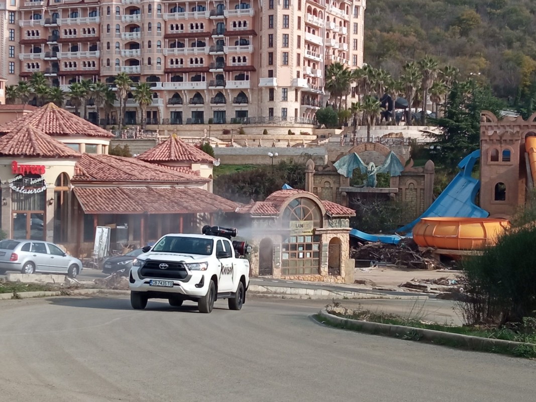 Община Несебър извърши дезинфекция на почистени тротоари и улици в района на Елените.