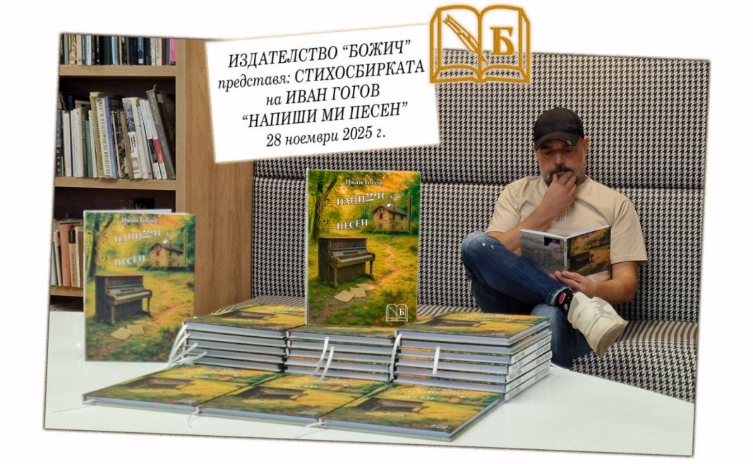 "Напиши ми песен" е поетичният дебют на бургаския музикант, композитор и текстописец Иван Гогов. Премиерата на стихосбирката ще бъде на 28 ноември от 18.30 часа в регионалната библиотека "Пейо Яворов".