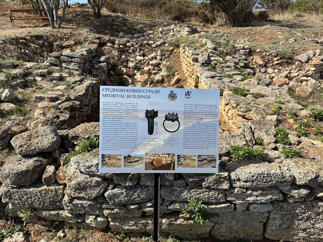 “Allí, hace tiempo, se descubrió también la tumba del aristócrata Gueorgui, en la que se conserva su anillo con sello. Este hermoso monumento, con un águila y la inscripción en círculo ‘Gueorgui, gobernante de Kaliakra’, se encuentra actualmente expuesto en el Museo Nacional de Historia.”