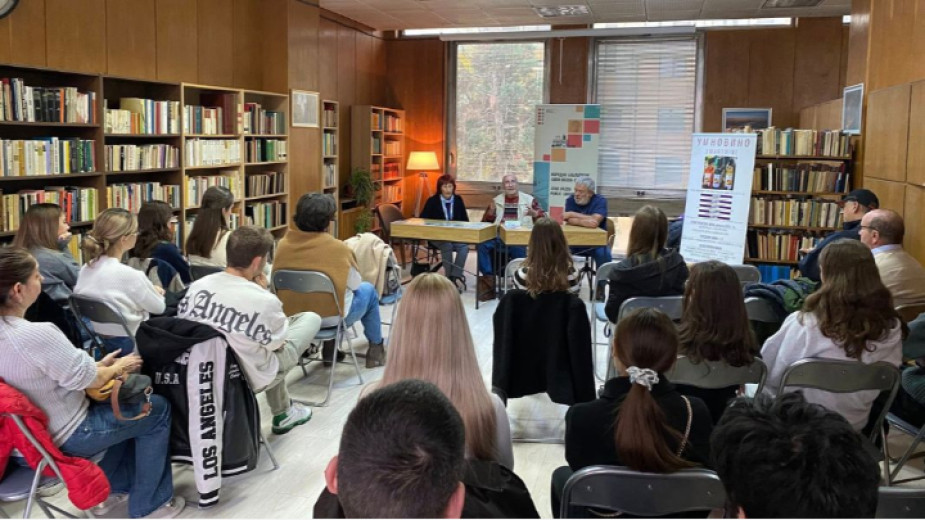 Y la sorpresa, muy grata, fue ver en la biblioteca a un público eminentemente joven y aunque un poco tímido en un principio, muy motivado e interesado. Hay que decir que Mario es un verdadero “contador de cuentos” que en todo momento mantuvo intrigado al público, lo mismo que en Sofía, por cierto, sea hablando de su infancia en el campo, de sus años de estudio, luego de profesor, de sindicalista, de exiliado, como también de técnicas narrativas y características de estilos o bien de su compañerito de case y amigo más querido y de toda su familia de negros, apellidados Das Neves, o sea, De las Nieves. Varios de sus integrantes son obviamente prototipos de personajes de sus novelas, entre ellos el propio Johnny Sosa. En conclusión, me gustaría añadir que, después de mi trabajo de traductora con La balada de Johnny Sosa, de Mario Degado Aparaín, y de los encuentros con el público, me he quedado con ganas de acercar al lector búlgaro otra obra, o incluso obras, de este verdadero mago de la escritura, acompañado siempre de su irreductible sentido del humor.