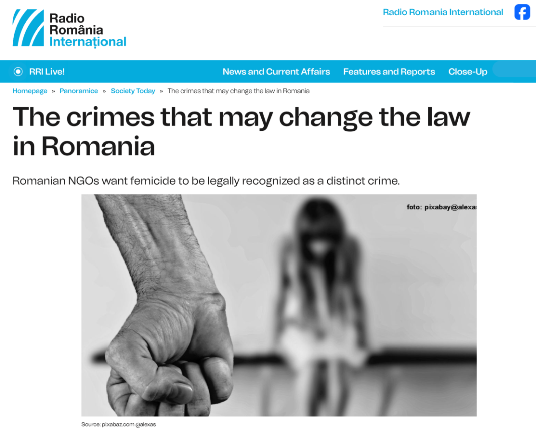 В Румъния, където повече от една жена седмично бива убита, неправителствени организации настояват за подобна промяна в закона. Всъщност, законопроект, позволяващ възможността убийства, свързани с пол, да бъдат наказвани с доживотен затвор, беше пуснат за обществено обсъждане в началото на ноември, съобщава Radio România.