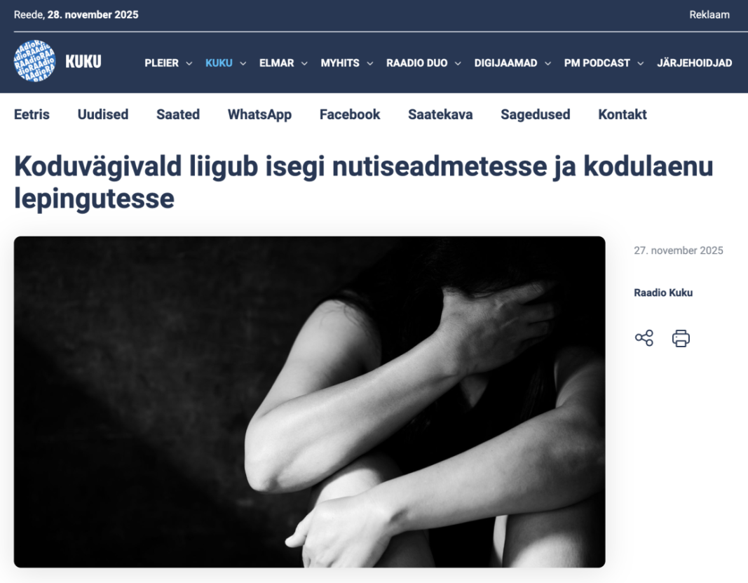 В Естония Ханалийса Уусма ръководи дейностите по превенция на домашното насилие във фондация "Президент Калюлайд", неправителствена организация, която цели да овластява уязвимите. Тя подчертава, че такъв вид насилие може да приема много форми.