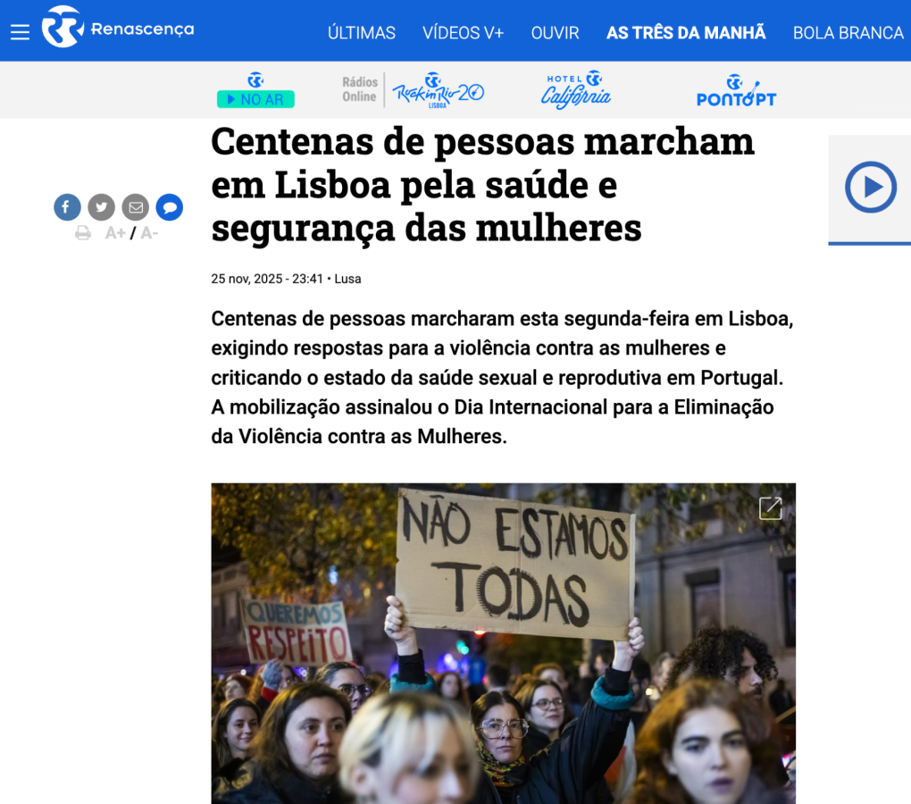 rr.pt/noticia – Стотици хора маршируват в Лисабон за здравето и безопасността на жените