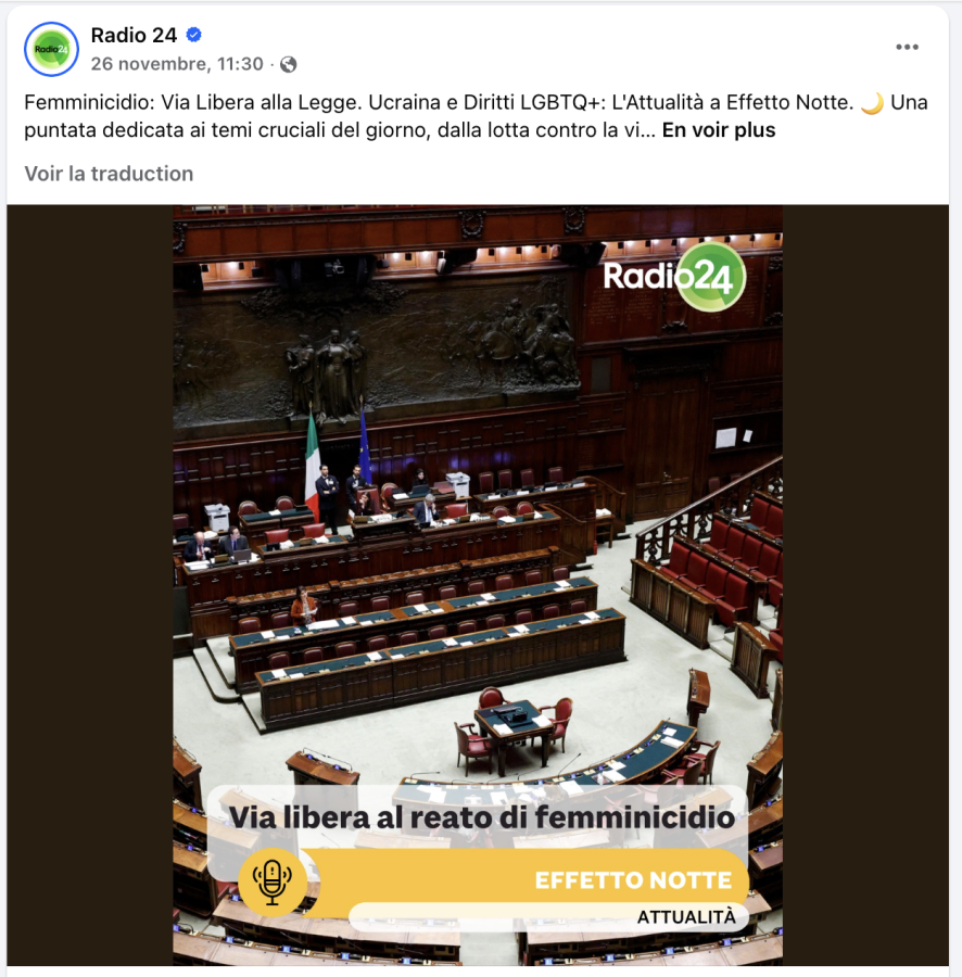 След този последен законодателен ход Италия се превръща в една от малкото държави – членки на ЕС, които са въвели правна дефиниция за фемицид в своя наказателен кодекс. Това ще даде възможност престъпленията, свързани с пол, да се отчитат отделно за статистически цели. На други места тези актове често се преследват – и отчитат – като убийство, непредумишлено убийство, нападение, довело до смърт, и т.н., дори когато имат измерение, свързано с пола.
