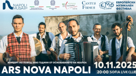 Ce 10 novembre, le Festival de musique européen a préparé une belle surprise pour les mélomanes. Le 2500e anniversaire de la fondation de la ville de Naples, dont la beauté est légendaire, sera célébré par un concert du groupe "Ars Nova Napoli", une des formations musicales les plus connues et les plus appréciées des musiciens de rue. Les six virtuoses feront voyager l’esprit du public au cœur de l’Italie du Sud par de nouvelles interprétations de chants traditionnels et des compositions originales, inspirées par la culture méditerranéenne. Le programme du spectacle qui commencera à 20H00 au "Sofia Live Club", témoigne de la passion des musiciens à réinterpréter la richesse des traditions musicales italiennes.
