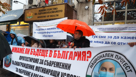 Млади лекари и студенти по медицина излязоха на протест пред здравното министерство. Демонстрацията е заради неизпълнените обещания от страна на управляващите за по-достойни възнаграждения и по-добри условия на труд. Акцията е организирана от инициативата "Бъдеще в България". Д-р Белослава Томова: Протестът на младите лекари не е само за..
