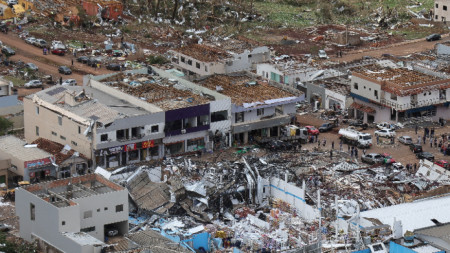 В Бразилия продължават спасителните операции по издирването на пострадали хора след торнадото, което връхлетя град Рио Бонито до Игуасу, в който живеят 14 000 души и отне живота на шестима. Съобщава се ветрове със скорост от 250 км/ч, които са разрушили сгради, както и обърнали автомобили. Предупреждение за бури продължава да е в сила както за..
