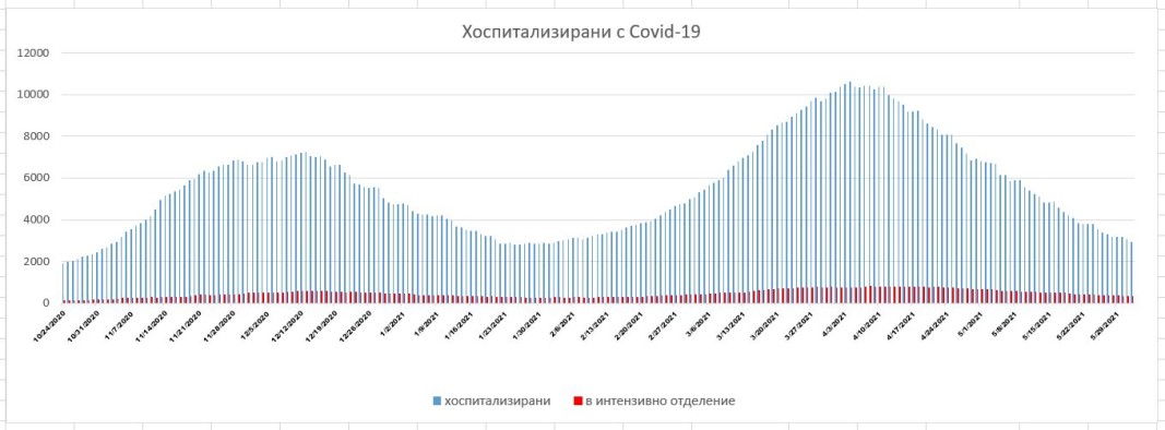2942-ма са хоспитализирани. От тях 322-ма са в интензивни отделения.