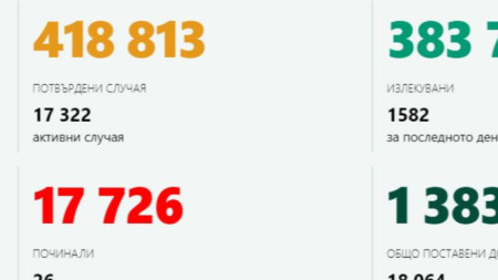 През изминалото денонощие са поставени 18 064 дози ваксини. Със завършен ваксинационен цикъл са 571 899 души.