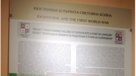Изложбата "Кюстендил и Първата световна война“, когато тук е главната квартира на Българската армия и градът е посетен от височайши особи, беше открита във фоайето на общинския театър. Автор на експозицията и текстовото съдържание е на историка доц. д-р Ангел Джонев. Архивни фотоси и предоставени от частни колекции фотоматериали представят..
