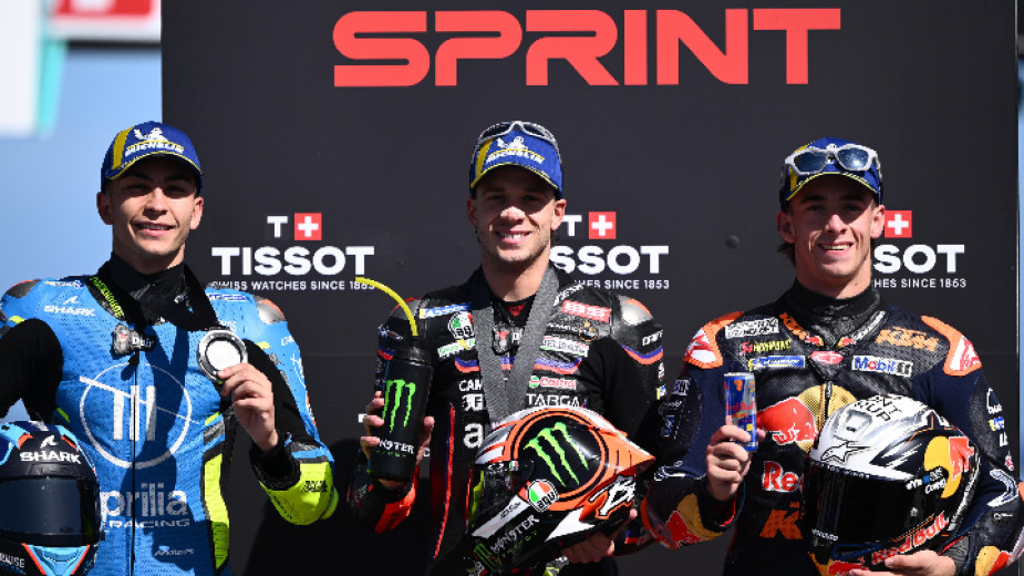 Италианецът Марко Бедзеки спечели своята втора поредна и общо трета спринтова победа за сезона в MotoGP, след като триумфира на късото състезание на пистата „Филип Айлънд“ в Австралия. За пилота на Априлия спринтът започна с нетипичен инцидент – още в първите метри на загряващата обиколка той се удари в чайка, която излетя от старт-финалната права. Пера останаха заклещени в предната аеродинамика на мотора, но това не попречи на италианеца да стигне до победата.