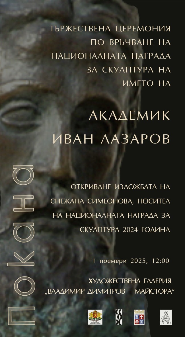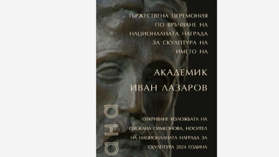 На церемония днес, в Деня на народните будители, в Художествената галерия "Владмир Димитров-Майстора" в Кюстендил ще бъде връчена Националната награда за скулптура на името на акад. Иван Лазаров. Това е петото издание на отличието след възобновяването му през 2021 година, а инициатори са Общината и СБХ. Церемонията започва в 12 ч.