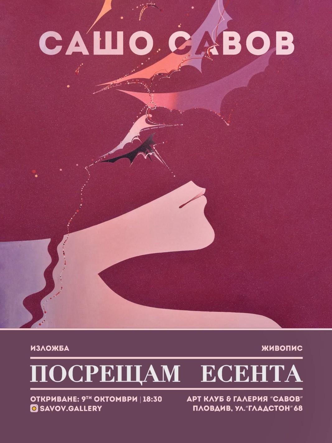 Пловдивският художник и дългогодишен преподавател Сашо Савов отбелязва 70-ата си годишнина с откриването на изложба в "АРТ клуб и галерия Савов" в Пловдив. Нарекъл е изложбата си "Посрещам есента". Сашо Савов представя на публиката 27 платна, всички рисувани през последните месеци.