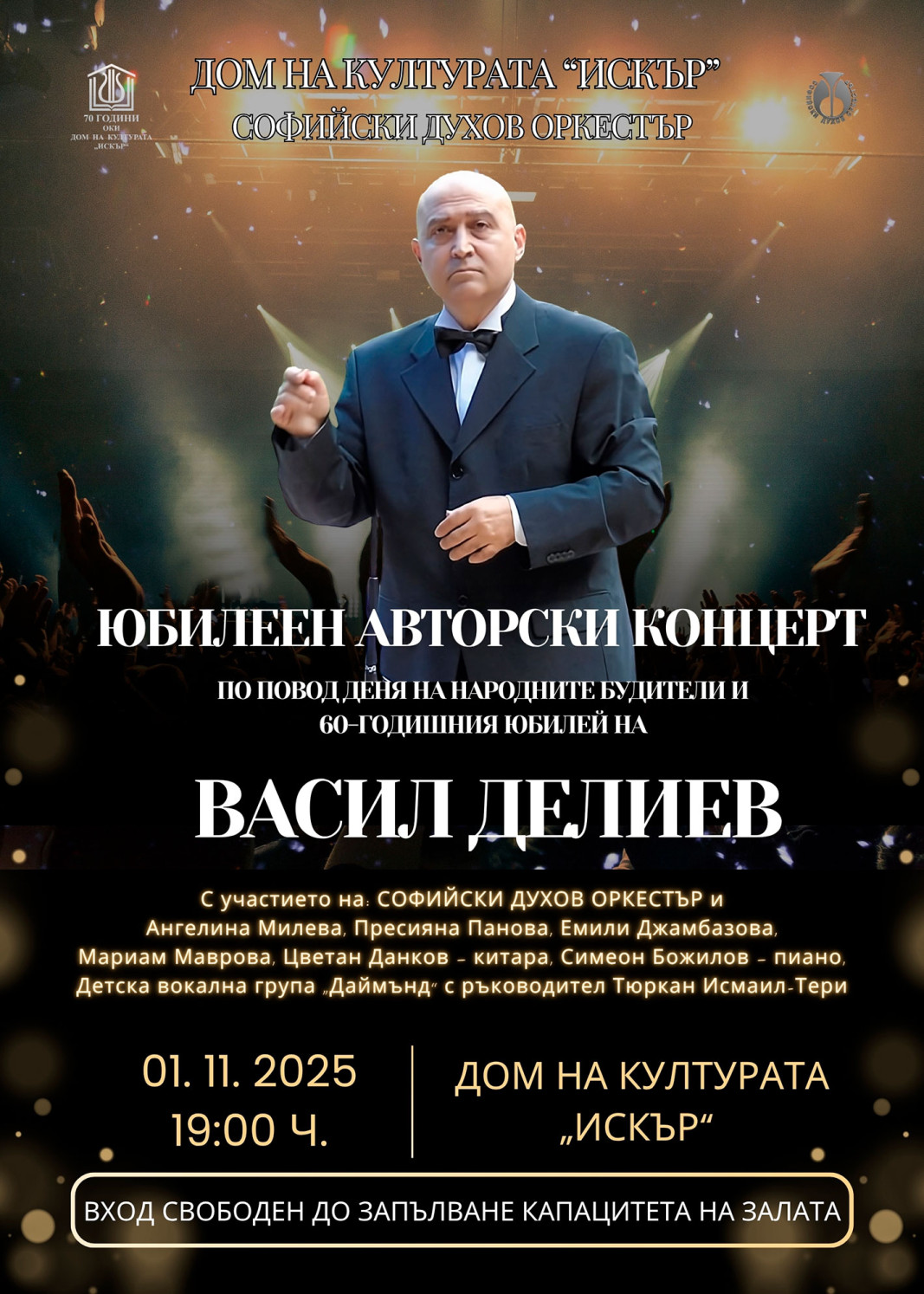 "Като диригент на Софийския духов оркестър, за Деня на народните будители, заедно с Общинския културен институт "Искър", ежегодно организирам концерт, в който се включва основно българска музика. Тази година, тъй като това съвпада с моя творчески юбилей, решихме отново да го организираме. В концерта включвам мои творби от различни периоди на моето творчество. Включил съм детски песни, защото в един период, когато дъщеря ми беше малка, пишех такава музика.