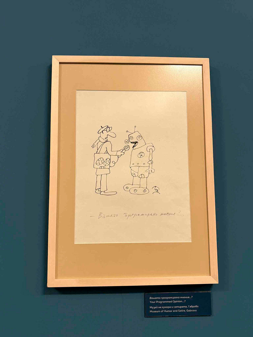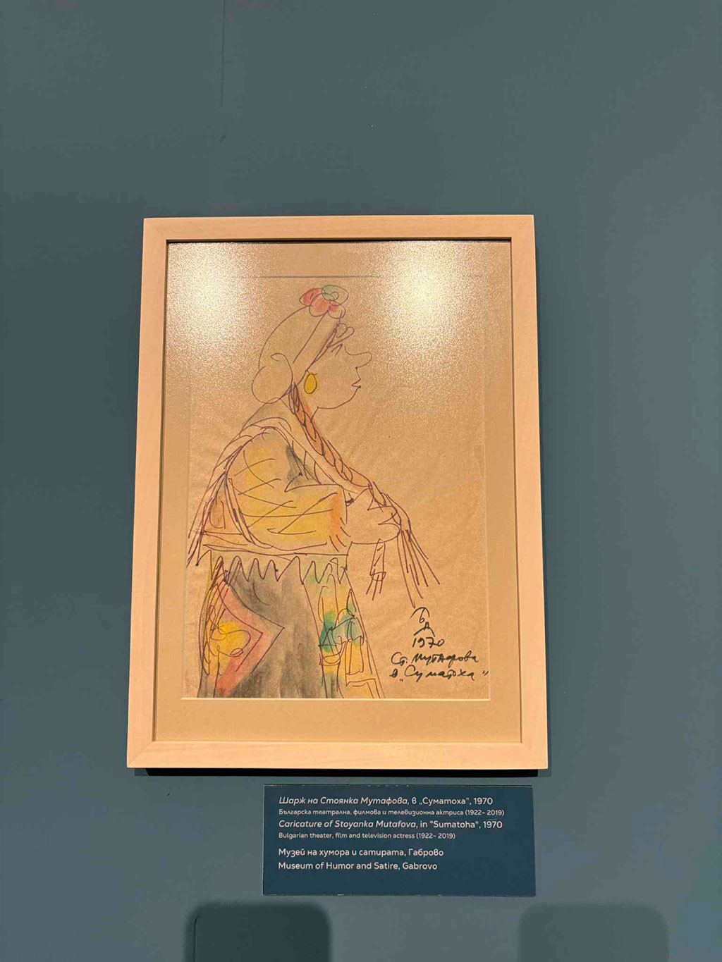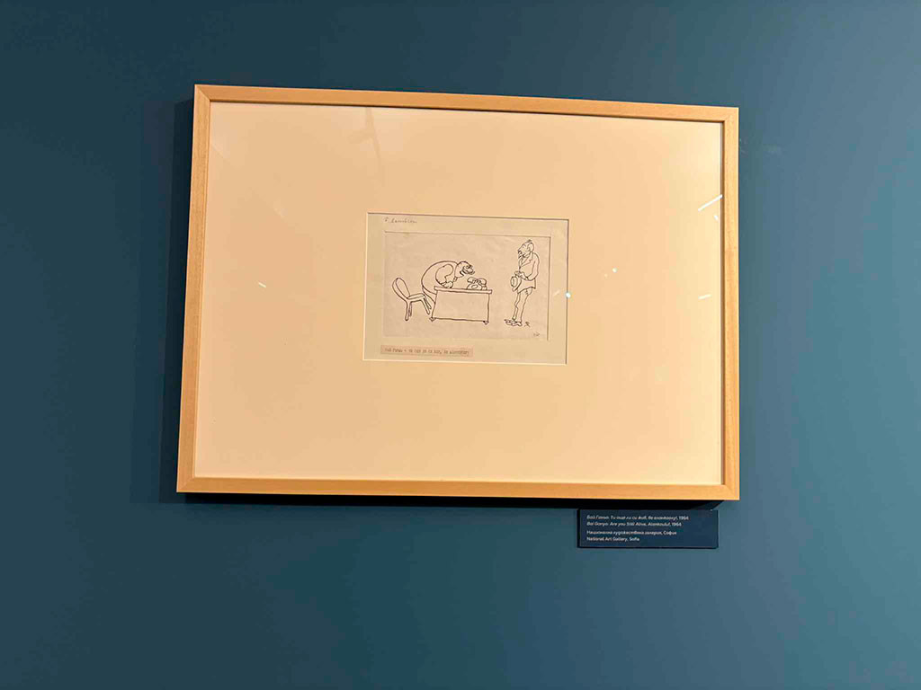 Защо в Габрово? Защото художникът е сред първите творци, свързали името си с Дома на хумора и сатирата (както тогава се нарича музеят) – "изографисал" е в стила на габровския фолклорен хумор музейния полубар, десетилетия любима градска забележителност. Прави същото с мозайките с габровски символи на входните врати, както и паното "Светът е оцелял, защото се е смял!".