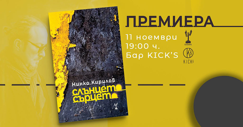 В най-новата книга на Нинко Кирилов има закачка в оформлението – една черна точка, която оказва се е слънцето, постепенно изгрява, достига зенит и после залязва – онагледено графично (дизайн Анна Лазарова). Накрая върху черния разтвор на последните страници виждаме изгрялата луна. Стихосбирката се нарича "слънцето сърцето", а първото стихотворение е със същото заглавие и то завършва така: "а слънцето е всъщност нарисувано/ желанието да си чужд е минало". Премиерата е на 11 ноември от 19 часа в бар Kick's, София.