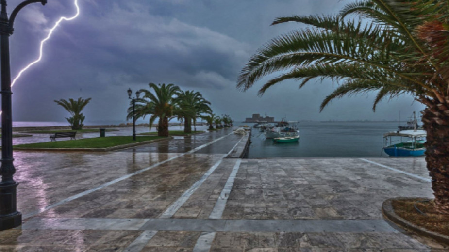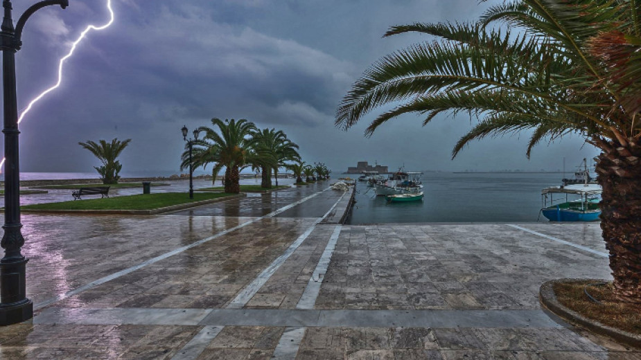 Силен средиземноморски циклон продължава да влияе върху времето в Гърция. В Северна Гърция и на островите в Егейско море валят интензивни дъждове, придружени от градушки и силен вятър.