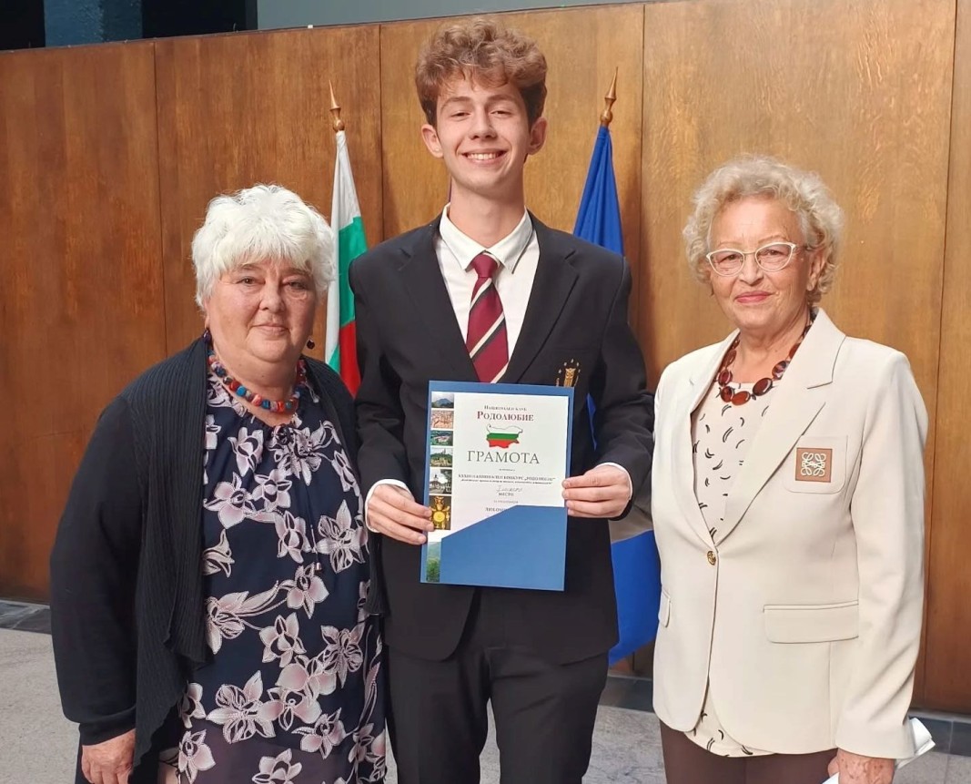 Дванадесетокласникът от СУ “Петко Рачов Славейков” Любомир Колев, член на Школата по история "ИстОрика" с ръководител Димитър Димов, спечели първо място в раздел "Презентация" и второ място в раздел "Есе" на XXXIII-то издание на Национален конкурс "Родолюбие" на тема "Българският принос в света на науката, технологиите и иновациите".