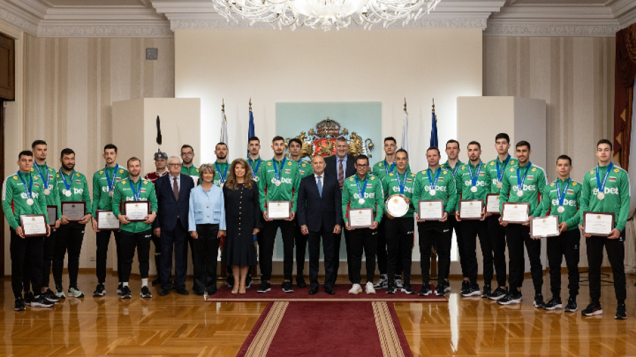 Президентът Румен Радев удостои с почетни плакети състезателите от мъжкия национален отбор на България по волейбол, треньорския щаб и Българската федерация по волейбол.