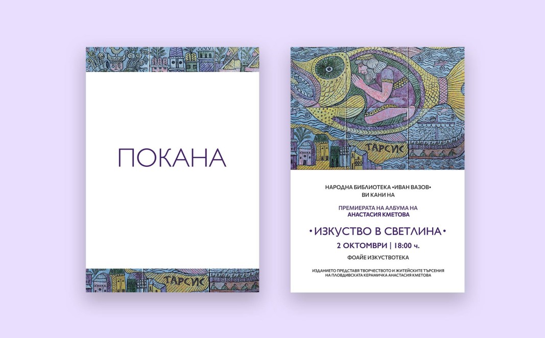 Книгата се издава с финансиране от наследниците на Анастасия Кметова Боян Кметов и Боян Чинков. Албумът "Изкуство в светлина" ще бъде представен от художника Жорж Трак и редактора на албума Ваня Недева, издателство "Нюзарт".