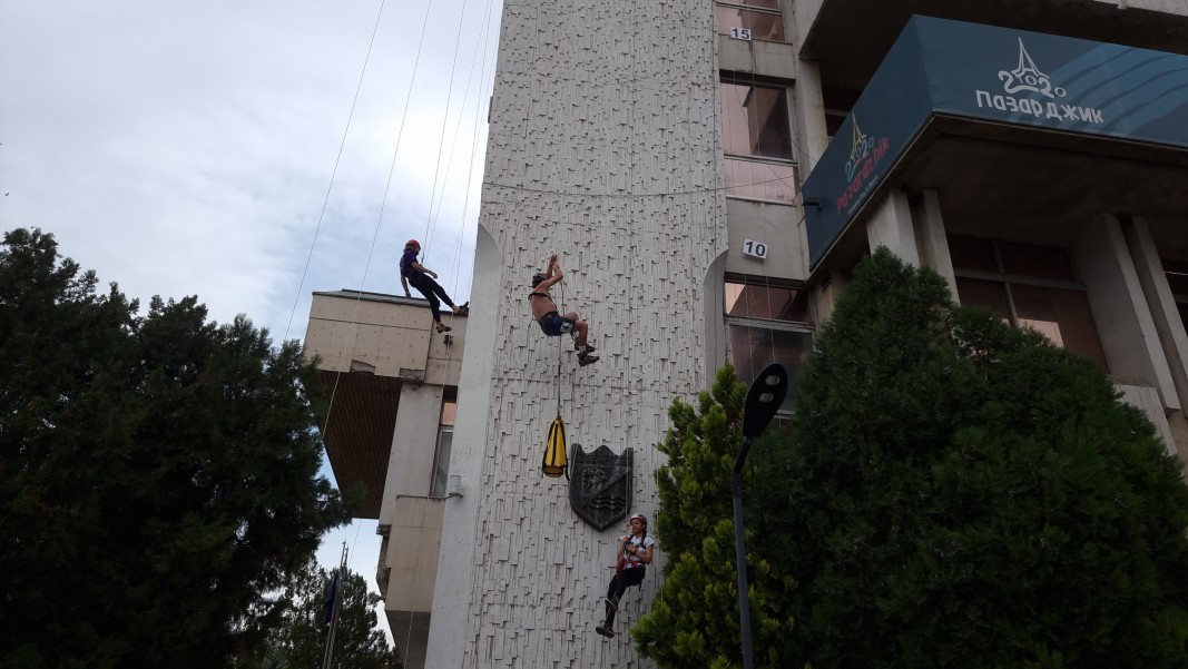 Тази година изкачването на сградата на общината е с благотворителна кауза – осигуряване на ново медицинско оборудване , специализирана носилка и кислородни апарати за пазарджишкото сдружение "Планинско спасяване".