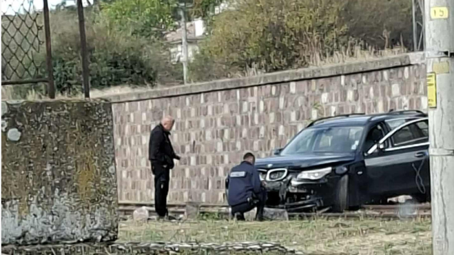 БМВ "кацна" върху жп линиите в района на жп гарата в Хисаря, след като пияният му шофьор първо преминал през тревни площи, после се блъснал в подпорна стена.