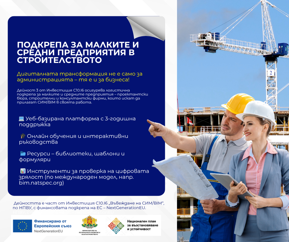 С тази подкрепа бизнесът ще получи реални инструменти и знания, за да бъде конкурентоспособен и иновативен в условията на цифровото строителство.