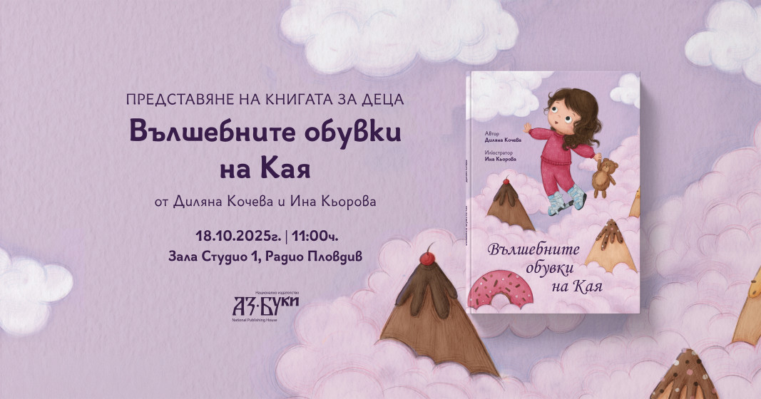 Утре 18 октомври от 11:00 часа в Първо студио на Радио Пловдив ще бъде представена детската книга „Вълшебните обувки на Кая“. Неин автор е журналистката Диляна Кочева, а илюстрациите са дело на талантливата Ина Кьорова.