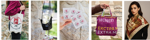 • Дамски шалове в лимитирана серия – нежни и леки тези шалове са декорирани с графичния облик на фестивала. Със своята елегантна визия те са подходящи както за ежедневието, така и като подарък за ценители на виното и на Пловдив. Всеки шал се предлага в красива опаковка и е идеален сувенир, който ще Ви напомня за винените приключения в Стария град.