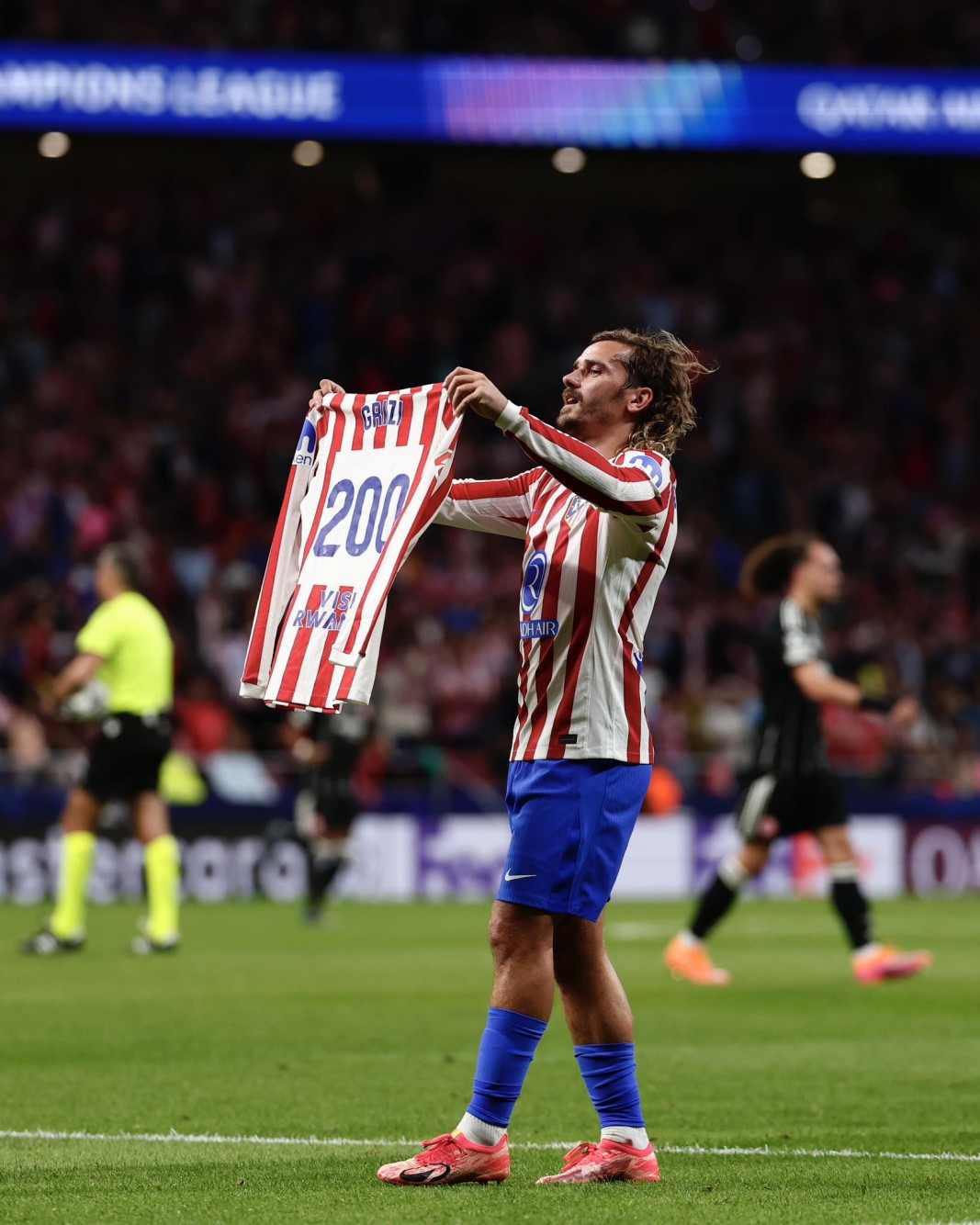 Гризман реализира попадение номер 200 с удар от близко разстояние в добавеното време на първото полувреме и го отпразнува с фланелка на Атлетико с надпис "200" на гърба, като най-резултатен голмайстор на клуба.