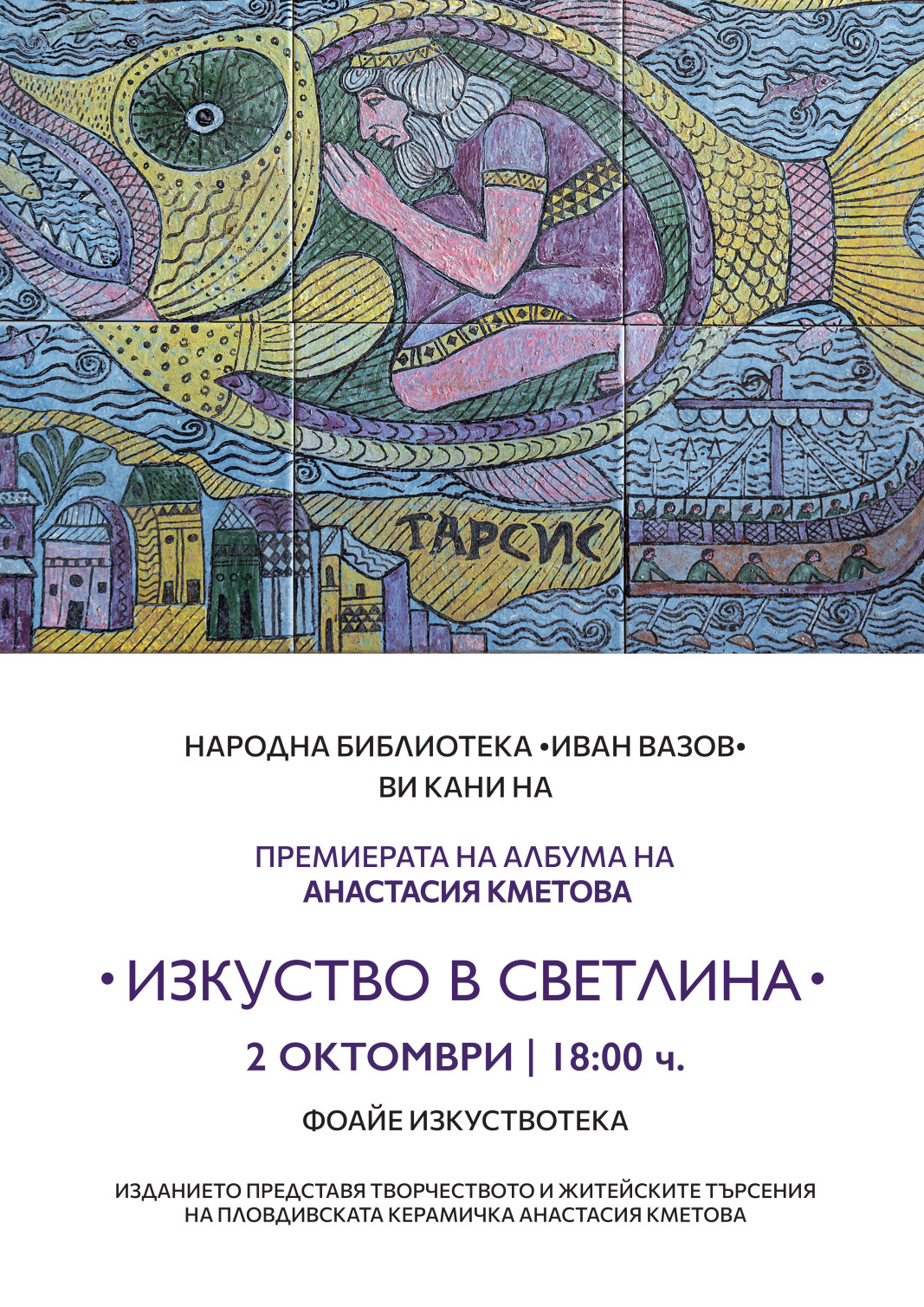 Днес в Пловдивската народна библиотека "Иван Вазов" от 18 ч. предстои премиерата на албума "Изкуство в светлина", посветен на твореца експериментатор Анастасия Кметова.