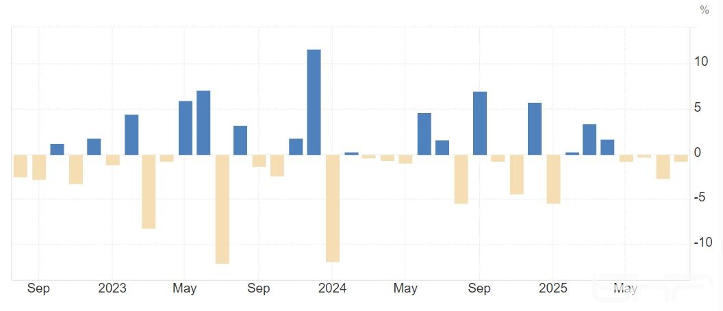 Поръчките за промишлено производствени стоки се понижиха през август с 0,8% спрямо юли, когато се свиха с цели 2,7%, докато осредните пазарни очаквания бяха за тяхно повишение с 1,1 на сто.