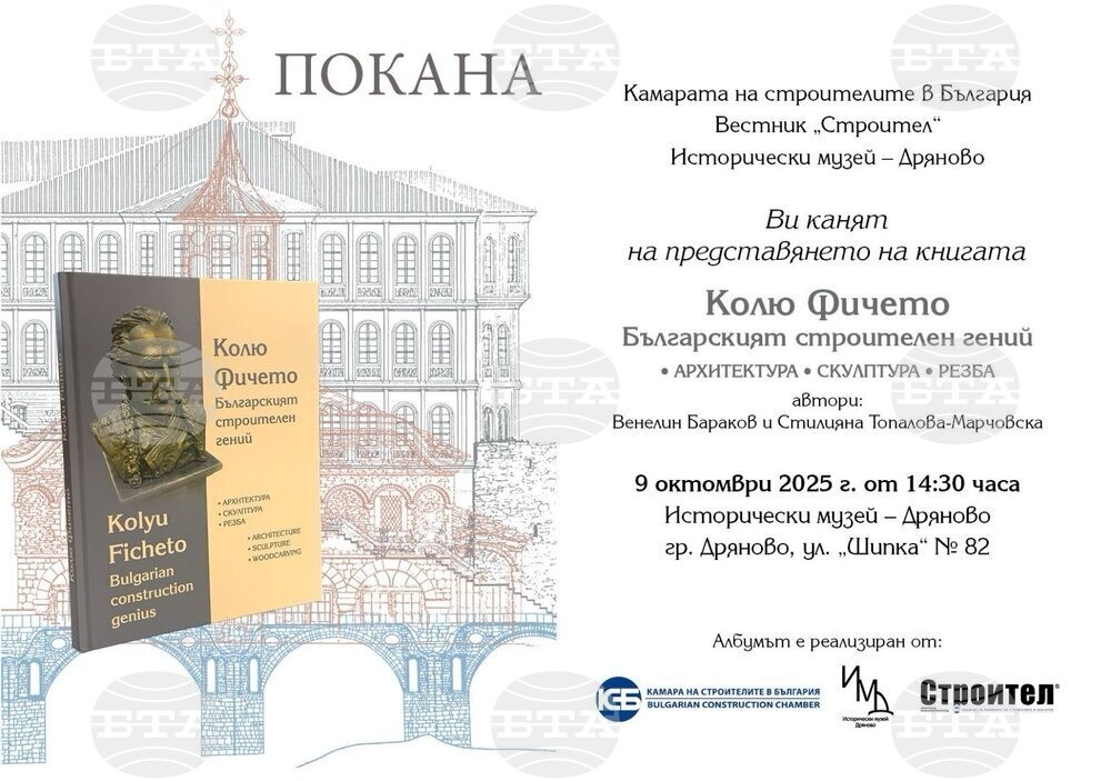 Днес в Историческия музей в Дряново ще бъде представено двуезичното и богато илюстрирано издание "Колю Фичето. Българският строителен гений".