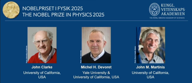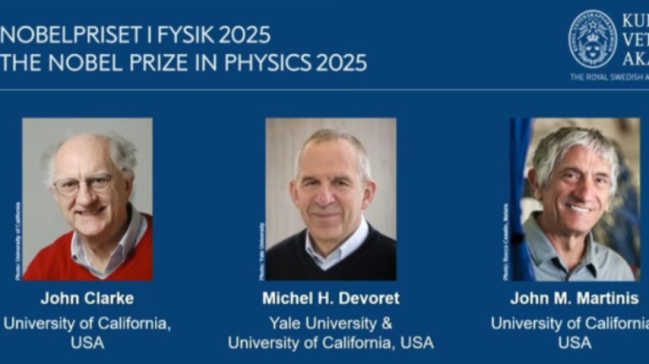 Кралската шведска академия на науките присъди Нобеловата награда по физика за 2025 г. на трима изтъкнати учени от Съединените щати – Джон Кларк (Калифорнийски университет), Мишел Х. Деворе (Университет Йейл и Калифорнийски университет) и Джон М. Мартинис (Калифорнийски университет). Отличието е за тяхното откритие на макроскопичния квантов тунелен ефект и квантуването на енергията в електрическа верига, съобщи официалният сайт на Нобеловия комитет.