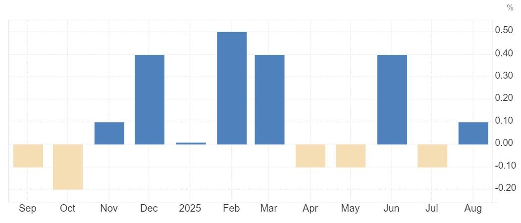 Брутният вътрешен продукт на Великобритания нарасна очаквано със скромните 0,1% през август спрямо юли, когато се сви с 0,1% (низходяща ревизия от предишна оценка за стагнация (0,0%)), показват данни на британската официална статистика ONS.