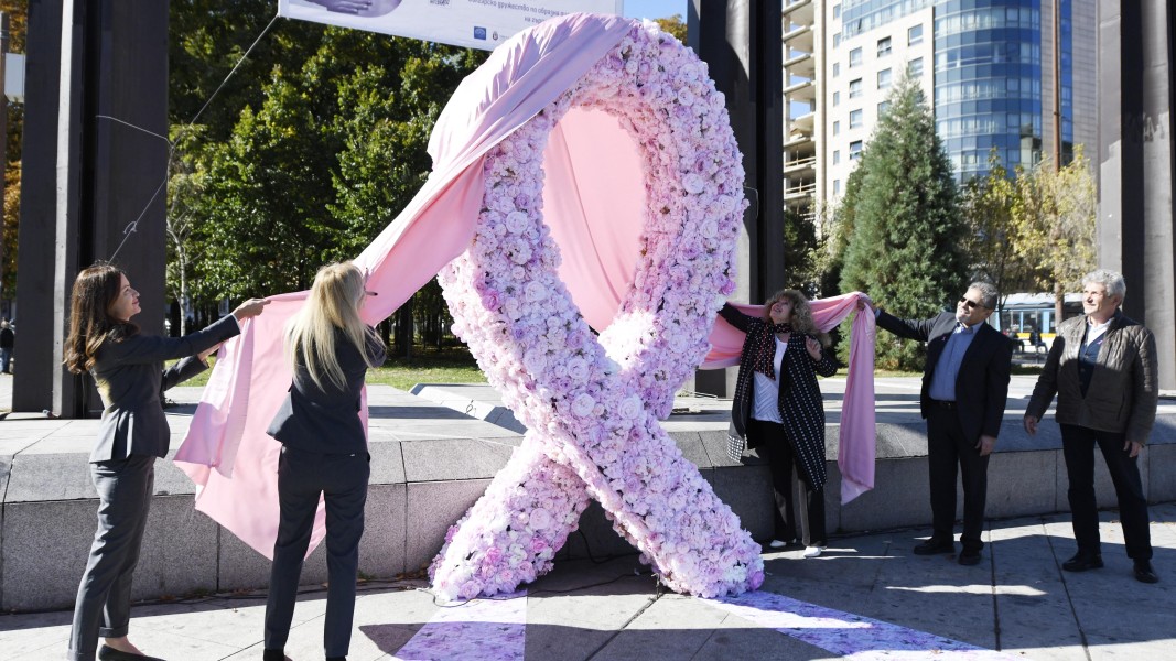 Арт инсталация по повод Световния ден за борба с рака на гърдата беше открита днес пред НДК. Събитието е организирано от Българското дружество по образна диагностика на гърда, а инсталацията символизира силата и красотата на женското начало.