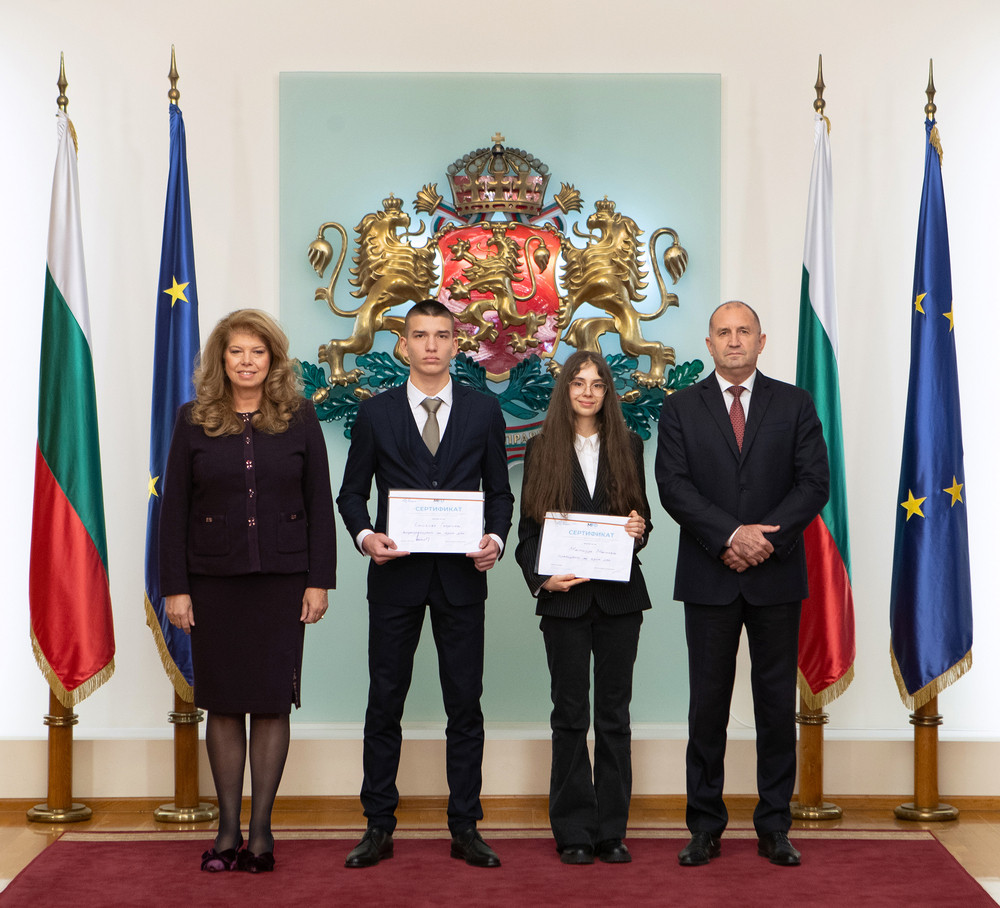 Румен Радев и Илияна Йотова връчиха сертификати на двамата ученици.