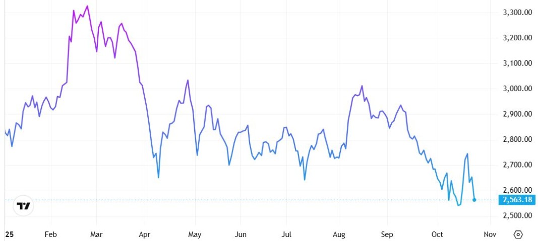 Руските акции на борсата в Москва се понижиха рязко от август насам, тъй като по-високата инфлация, високите лихвени проценти от страна на Руската централна банка и по-ниските публични разходи извън отбраната намалиха вътрешната икономическа активност.