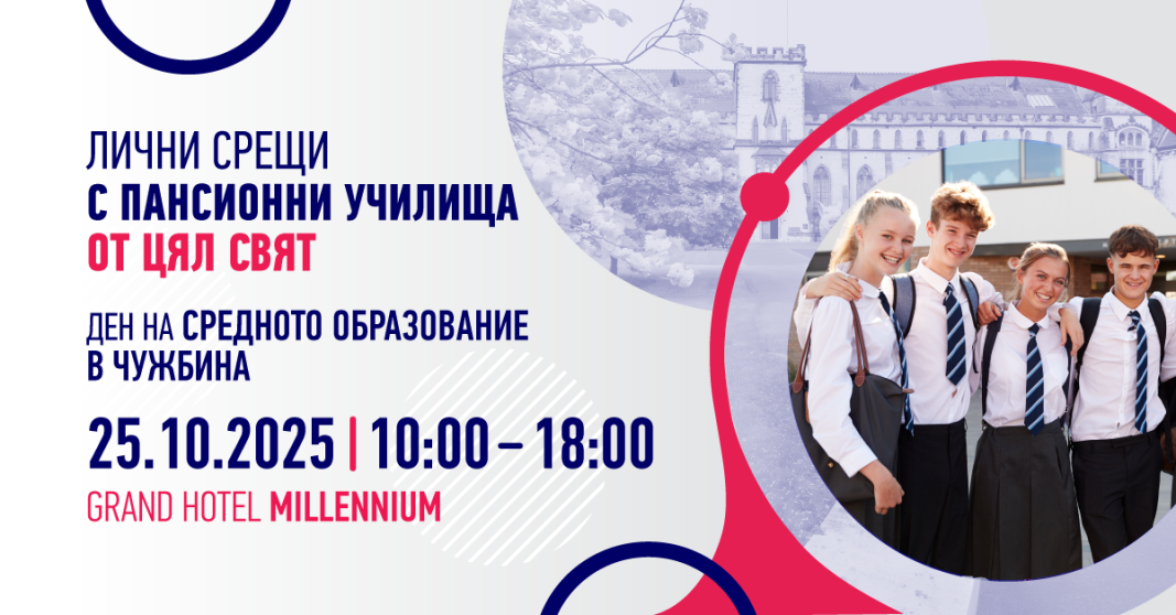Те поясняват, че индивидуалните разговори с представители и директори по приема на образователни институции от Великобритания, Белгия, Германия, Испания, Италия, Португалия, Швейцария и САЩ ще дадат отговорите на всички важни теми, които вълнуват родителите.