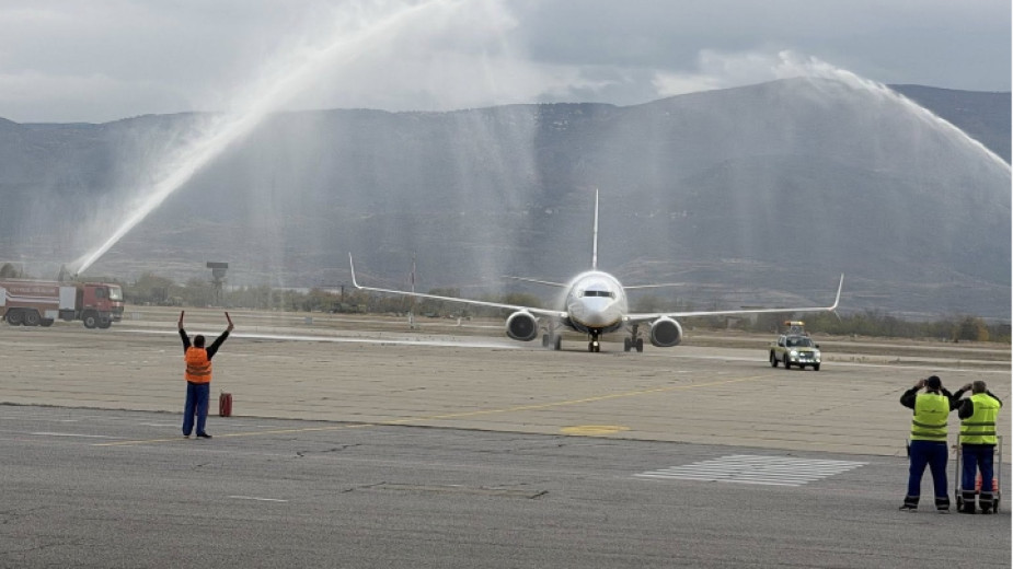 Кацна първият полет на летище "Пловдив" от Милано. Самолетът бе посрещнат по традиция с воден шпалир.