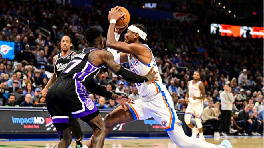Шей Гилджъс-Алекзандър отбеляза 31 точки за победата на Оклахома Сити Тъндър у дома срещу Сакраменто Кингс със 107:101 в среща от редовния сезон на Националната баскетболна асоциация на САЩ и Канада.