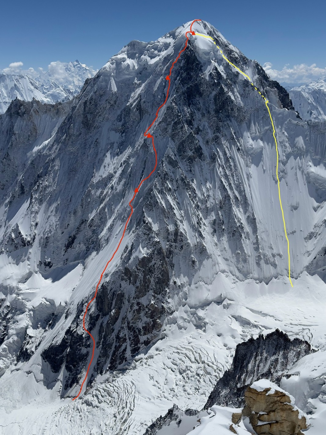 Първото е по Западния ръб на високия почти 8000 м връх Гашербрум III (7952 м) в Непал, осъществено от Алеш Чесен (Словения) и Том Ливингстън (Великобритания). Те се изкачват по маршрута, който наричат “Edge of Entropy” (почти 3000 м от Базовия лагер догоре), от 31 юли до 4 август. След това правят траверс, като слизат по Източната стена, а после следват нормалния маршрут (по Югозападния ръб) към Гашербрум II.